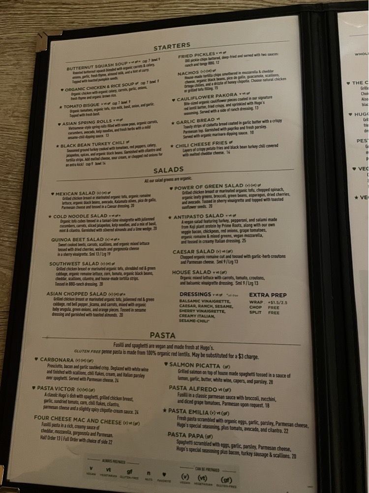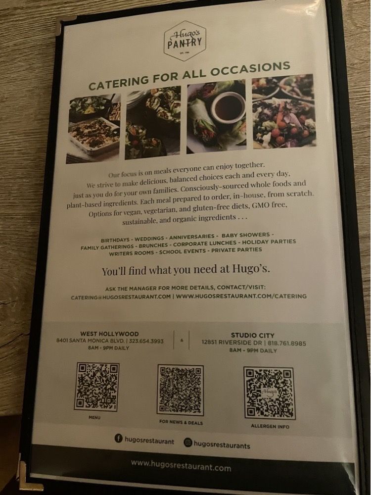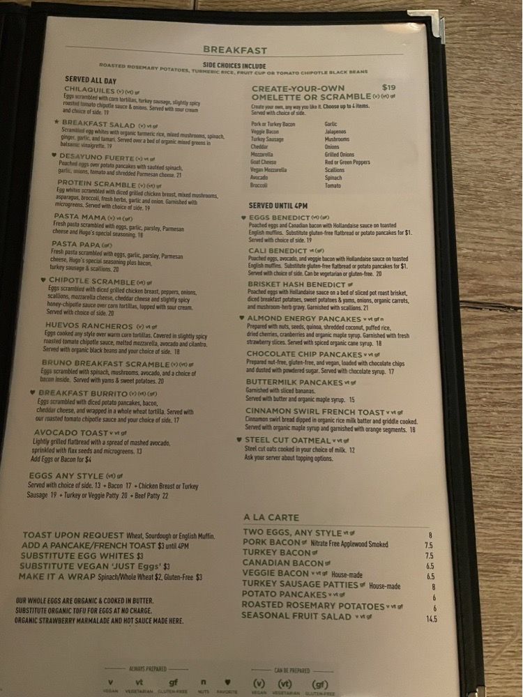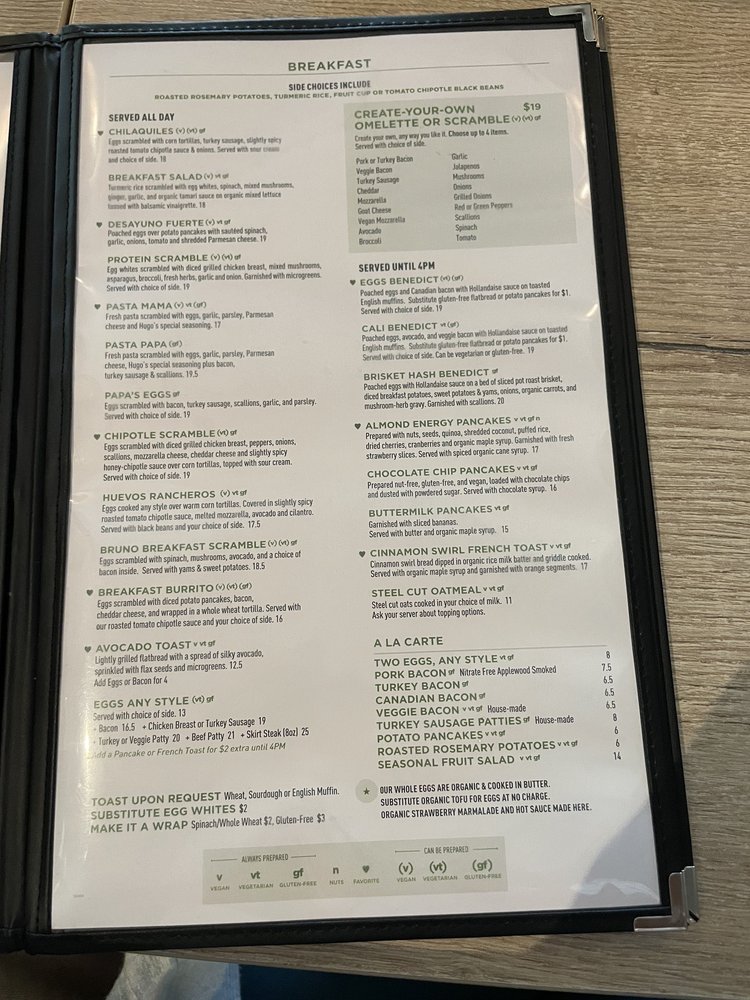 Hugo's - Studio City offers a variety of dining options including vegan choices, breakfast, brunch, lunch, and dinner. Their menu features dishes like Pasta Mama, Pasta Papa, and Chilaquiles, all made with fresh ingredients and customizable to suit dietary needs. Customers rave about the high quality, organic ingredients used in the dishes, as well as the knowledgeable and friendly service. The restaurant also provides outdoor seating, free Wi-Fi, and a casual dining atmosphere perfect for families and groups. The reviews highlight the delicious flavors, generous portions, and the attention to detail in food presentation. Hugo's commitment to using environmentally friendly practices like compostable containers and reusable tableware sets them apart as a sustainable dining option. Give Hugo's - Studio City a try for a satisfying and wholesome dining experience.